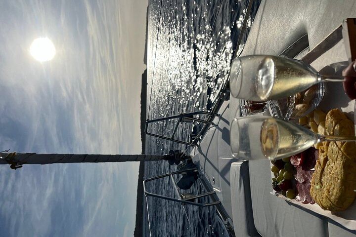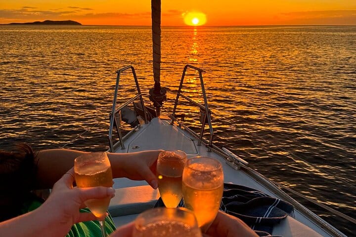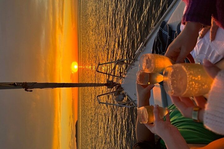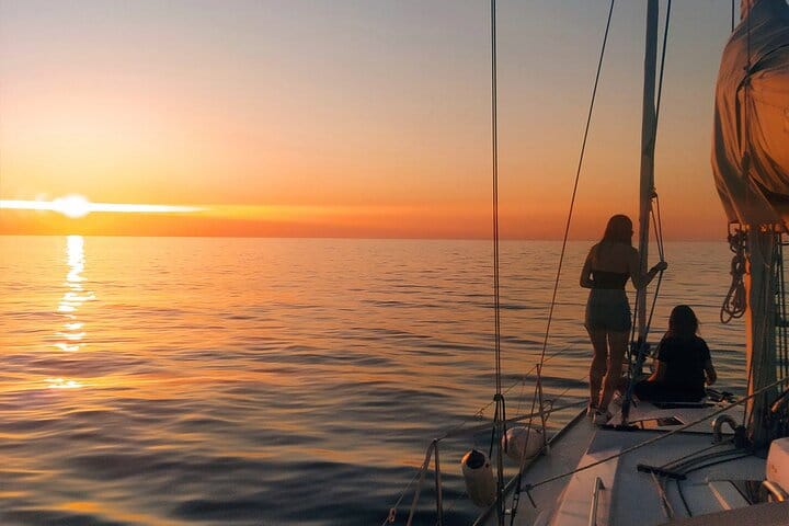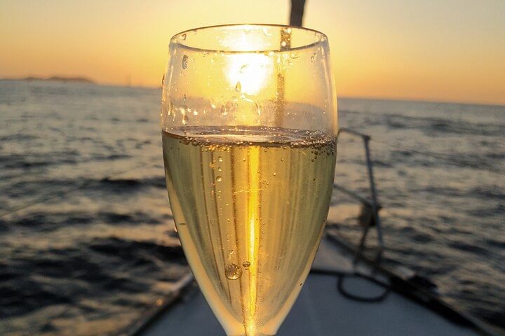 2.30 hour excursion to watch the sunset from the sea on a sailboat with gourmet snacks and champagne.